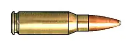 The .308×1.5" Barnes is a wildcat cartridge based on the .308 Winchester (7.62×51mm NATO). The cartridge is similar to the 7.62×39mm Russian (M43) cartridge though it outperforms the Soviet cartridge.[2] It was designed by Frank C. Barnes in March 1961 by shortening the .308 Winchester to 1.5 in (38 mm) and giving it a shoulder angle of 20° (α=40°) similar to the parent cartridge.