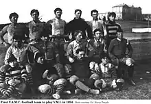 VAMC played their first game of the year on October 20, 1894, against Emory and Henry College at their new athletic field, Sheib Field, in front of 400 spectators.[2] VAMC won the toss and scored their first touchdown three minutes into the game, with VAMC halfback Harvey running into the end zone, with R. N. Watts missing the extra point.[2] Harvey two more touchdowns in the second half, with Watts converts both extra points.[2] Due to injuries to the Emory squad, the second half was not completed and VAMC won the game.[2]