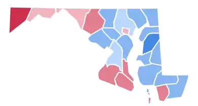 In this election, Maryland voted 8.28% more Democratic than the nation at-large.[8]
