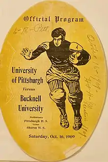3. 1 2 "Pitt Defeats Bucknell, 18-6". The Gazette Times. October 17, 1909. pp. 3–4 via Newspapers.com.