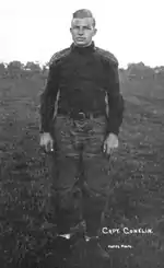 37. "Coach Yost Makes Big Shift in the Michigan 'Varsity: Wells Goes to Halfback, Conklin to Tackle and Kayner, a Newcomer, to Guard--Garrels and Pontius Get Flank Positions--Uncertain as to Who Will Play Quarterback Against Syracuse on Saturday, This Depending on Jimmy Craig's Condition at That Time". Detroit Free Press. November 2, 1911. p. 9. Archived from the original on January 31, 2013.