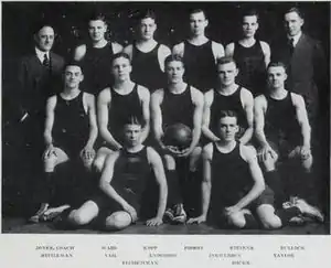 Under the direction of coach Ralph Jones, the 1917–18 season for the Illinois Fighting Illini men's basketball team, was unusual because World War I was happening in Europe. Co-captain George Halas, for example, left the team in January 1918 to help out with the war effort.[2] In only the second season of having 10 members, the Big Ten Conference continued their 12-game schedule of home and road competitions. The Illini finished their season with an overall record of 9 wins and 6 losses and a 6 win 6 loss conference mark. The starting lineup included co-captain Earl Anderson and B.E. Mittleman at the forward positions, J.S. Probst and P.C. Taylor at center, and co-captain George Halas and Burt Ingwersen as guards.[3] Anderson would be named a consensus All-American for the season.