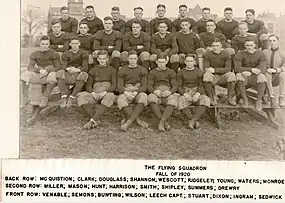 The 1920 VMI Keydets football team represented the Virginia Military Institute (VMI) in their 30th season of organized football, during the 1920 college football season. Led by first-year head coach Blandy Clarkson, the Keydets went 9–0 and outscored opponents 431 to 20.[1] College Football Hall of Fame inductee Jimmy Leech starred on the team, leading the nation in scoring with 210 points.[2] Leech was selected third-team All-America by Walter Camp. The season included the first instance of the rivalry with The Citadel, which would later become known as the Military Classic of the South. The team was nicknamed "The Flying Squadron."