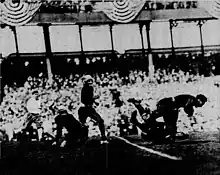 Notre Dame player being tackled by an Army player during the October 18 game at New York City's Polo Grounds