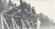 In a departure from his practice of allowing the press to attend Michigan's workouts, Michigan coach Harry Kipke prepared for the game behind locked gates at Ferry Field. The Associated Press reported that "an air of deepest mystery" surrounded the Michigan camp, with expectations that Kipke intended to "shoot the works" against Ohio State.[26] Michigan athletic director Fielding H. Yost predicted the matchup would be "some game" and added, "It won't be a parade of chocolate soldiers."[27] A pep rally was set for Hill Auditorium the night before the game. The Michigan team spent the night at Barton Hills Country Club while the Ohio State team stayed overnight in Dearborn, Michigan.[24] Though Michigan Stadium's official capacity was 75,000, the demand for tickets prompted Michigan's athletic department to build temporary seating around the edge of the bowl. Newspapers and the University of Michigan yearbook reported that the game ultimately drew a crowd of more than 93,000, including 11,000 Ohio State fans.[28][29] Up to that time, it was "the largest crowd that ever saw a Maize and Blue team perform."[30]