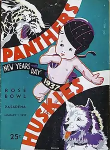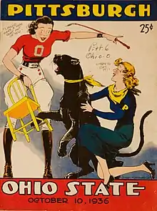 The 1936 Pittsburgh Panthers football team represented the University of Pittsburgh in the 1936 college football season. In its 13th season under head coach Jock Sutherland, the team compiled a 8–1–1 record, shut out five of its ten opponents, and outscored all opponents by a total of 214 to 34.[1] The team played its home games at Pitt Stadium in Pittsburgh. The Panthers won the Rose Bowl and were selected national champion by the contemporary Boand math system and retroactively years later by the Football Researchers poll and Houlgate math system.[2][3][4][5]