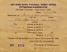 1936 University of Pittsburgh football ticket collage