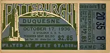 68. "Fake Tickets Out For Stadium Game". The Pittsburgh Press. October 23, 1936. p. 47. Retrieved June 17, 2022 via Newspapers.com.