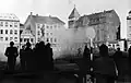 Rocks and eggs were tossed at the building, some breaking the windows and one narrowly missing the head of the Parliamentary president, until the Reykjavík police force, aided by volunteers from the Independence Party intervened, beating rioters down and eventually launching tear gas grenades at the rioters.[1] It was the first time police in Iceland used tear gas against protesters and the only time until 2009, when police used it during the Icelandic financial crisis protests.[2]