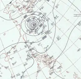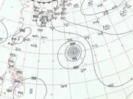 Typhoon Marie had a minimum pressure of 956 mb and a maximum windspeeds of 85 mph. Marie crossed the southern islands of Kyūshū and Shikoku before turning northeast and striking Hokkaidō island. Marie caused the ship Toya Maru to sink in the Tsugaru Strait. 1,361 people were killed and 400 were left missing.[4] Due to this disaster, the typhoon is known in Japan as the Toya Maru Typhoon.[5]