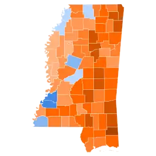 As of the 2020 presidential election, this is the last election in which the following counties did not vote for the Republican presidential candidate: Forrest, Lowndes, Lamar, Lauderdale, Lincoln, Newton, Rankin, Scott, Simpson, Harrison, Jackson, Choctaw, Jones, and Smith.[31]