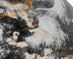 Flooding was also reported in Hispaniola and eastern Cuba.[4] In Cuba, a state of alert was declared for Santiago de Cuba, Guantanamo, Granma, and Holguin provinces, and 7,500 people were evacuated. Heavy rainfall caused landslides and isolated several towns after roads and rails were blocked. Some areas lost power or telephone services.[7] Five people were killed in Cuba, four of whom from drowning and one from electrocution.[9] In nearby Haiti, flooding was worst in Les Cayes,[7] where the Ravine River destroyed many homes and left 1,300 homeless.[9][10] Throughout the country, flooding severely damaged crops and wrecked bridges and roads. There were 21 deaths in the Les Cayes area.[10] In the Dominican Republic, there were 12 deaths around Santo Domingo after mudslides buried people. Four towns were isolated after rivers exceeded their banks, forcing hundreds of people to evacuate.[9] Overall, the system caused 94 deaths and $25 million in damage.[4]