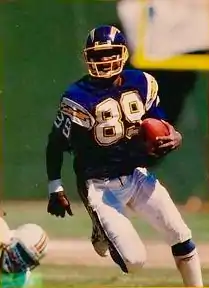 Despite having three veteran tight ends on their roster, the Chargers added more depth at that position with their 1st-round draft pick;[24] Rod Bernstine had played at running back in high school, but converted to tight end under the advice of Texas A&M coach Jackie Sherrill.[25] He had only 10 catches as a rookie, and eventually switched back to the running back position. Bernstine would finish his time with the Chargers having scored 19 touchdowns and rushed for over 2,000 yards, with a further 888 receiving yards.[26]