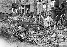 The battalion subsequently served on the Western Front until the end of the war in late 1918.[1] After the battalion's introduction to trench warfare around Fleurbaix it was committed to the Battle of Pozieres in July 1916 where, under the command of Lieutenant Colonel Edmund Nicholson – an artillery officer who had served at Gallipoli – they laid the form-up trench for the attack, before being committed to the capture of the village itself.[7][8] The battalion's losses in its first battle amounted to 180 killed or wounded.[9] During the next two-and-a-half years, the battalion fought in most of the main battles that the Australians fought in along the Western Front. They took part in the Battle of Mouquet Farm later in 1916, and in early 1917, they were tasked with extending a light railway system towards Fremicourt as part of preparations for the Battle of Bullecourt.[10] Later in the year, they took part in the Third Battle of Ypres, taking part in actions around the Menin Road, Polygon Wood, Broodseinde Ridge and Passchendaele.[11] Later, around Ypres in October, the battalion worked to clear the Ypres–Zonnebeke road, which had virtually disappeared under a layer of thick mud and debris due to a prolonged artillery bombardment.[12]