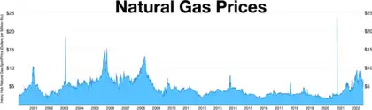 Uranium traded at about $15–$20/kg since the late 1980s due to a 10-year secular bear market, with a 2001 low of just over $10/kg. The Uranium bubble of 2007 started in 2005[58] and began to accelerate badly with the 2006 flooding of the Cigar Lake Mine in Saskatchewan.[59][60][61] Uranium prices peaked at roughly $300/kg in mid-2007,[62] began to fall in mid-2008 and are now (end 2010) hovering about $100/kg.[63] The stock prices of many uranium mining and exploration companies rose sharply, only to fall later in this boom.[59]