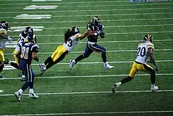Deshea Townsend jumps against Rams WR Drew Bennett