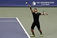 In singles, Nadal reached the semi-finals at the BNP Paribas Open in Indian Wells as the current defending champion. However, the eventual winner, Ivan Ljubičić, defeated him in three sets.[10] He and López won the doubles title by defeating the number one seeds Daniel Nestor and Nenad Zimonjić.[11] This boosted Nadal's doubles ranking 175 places,[12] going from number 241 to being number 66 in the world.[13] After Indian Wells, Nadal reached the semi-finals of Sony Ericsson Open where he lost to the eventual champion Andy Roddick in three sets.[14]
