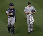 Brian McCann and Chase Whitley before a game against the Orioles on July 13.