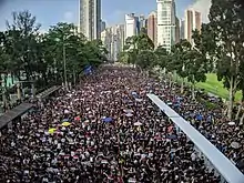 - ↑ "Nearly 2 million people march to oppose Hong Kong extradition bill, organisers say". South China Morning Post. 16 June 2019. Archived from the original on 16 June 2019. Retrieved 16 June 2019.