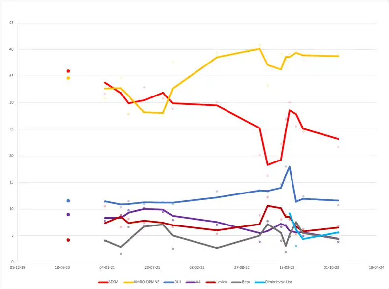 SDSM LDP/DOM Besa PDSh A ASh VMRO-DPMNE BDI Levica Dimitrievski Gruevski Others Lead