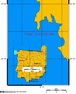 The weather finally relented on the morning of 24 October permitting the Armada, numbering eighty-one ships, to depart the harbour of Lisbon.[32] The fleet along with the army set sail from Lisbon on 25 October, heading towards La Coruña and sailed in safety as far as Viana do Castelo where they had to anchor and wait for a wind.[33] When the wind came they neared Cape Finisterre, the land's end at the north-west of the Spanish peninsula.[31] It was to be their furthest point and almost immediately they encountered an unexpected storm.[12] The rest of the ships that succeeded in weathering the Cape were scattered into the ports of the Bay of Biscay, many battered beyond repair.[4] The whole Spanish force had ceased to exist as an effective fighting fleet.[29] Forty battered vessels managed to turn back and enter the port of Ferrol, including the Adelantado in the flagship San Pablo.[14]