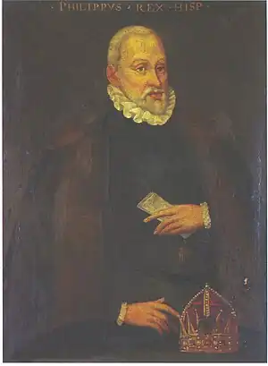 ![]() Philip II of Spain in his old age, ordered the Armada of 1596 in revenge for the English attack on Cadiz | |||||||