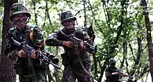 Soldiers from 36th Infantry Division patrolling in jungle during a military exercise in 2012.