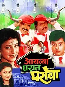 Aayatya Gharat Gharoba (transl.Habitation in a strange house) is a 1991 Indian Marathi-language musical comedy film directed and produced by Sachin Pilgaonkar. Released in Maharashtra on 25 September 1991, the film stars an ensemble cast of Sachin Pilgaonkar, Supriya Pilgaonkar, Ashok Saraf, Laxmikant Berde, Rajeshwari Sachdev (in her debut), Prashant Damle, Kishori Shahane, Viju Khote and Sudhir Joshi.[1] The film is loosely based on 1948 Hindi film Pugree which was remade in 1972 as Dil Daulat Duniya.[2][3]