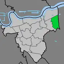The ward of Abbey Wood (green) within Royal Borough of Greenwich (light grey)