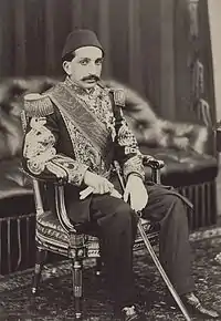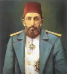 Abdulhamid or Abdul Hamid II (Ottoman Turkish: عبد الحميد ثانی, romanized: Abd ul-Hamid-i s̱ānī; Turkish: II. Abdülhamid; 21 September 1842  10 February 1918) was the 34th sultan of the Ottoman Empire from 1876 to 1909, and the last sultan to exert effective control over the fracturing state.[3] He oversaw a period of decline, with rebellions (particularly in the Balkans), and presided over an unsuccessful war with the Russian Empire (1877–78), followed by a successful war against the Kingdom of Greece in 1897, though Ottoman gains were tempered by subsequent Western European intervention.