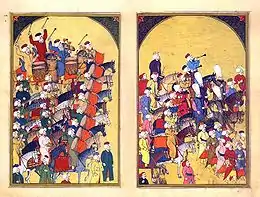 Miniature painting from the Surname-i Vehbi (folio 172a on the left and 171b on the right) by Levni.