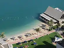 Gulf waters of Abu Dhabi holds the world's largest population of Indo-Pacific humpbacked dolphins.[23][24][25] To the east of the island is the Mangrove National Park, located on Al Qurm Corniche. Al-Qurm (ٱلْقُرْم) is Arabic for "The Mangrove".[26]