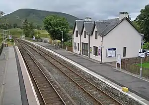 Achnasheen railway station is a remote railway station on the Kyle of Lochalsh Line, serving the village of Achnasheen in the north of Scotland. The station is 27 miles 72 chains (44.9 km) from Dingwall, between Achanalt and Achnashellach.[4] ScotRail, who manage the station, operate all services.