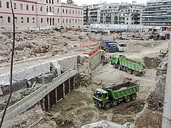 - The excavation below ground level continues. The site and process are visible through the ground level glass flooring. Of June 2019, the site is available for visitation.