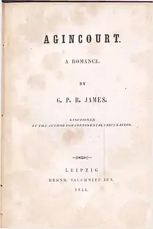1. 1 2 3 4 5 6 7 8 9 10 11 12 13 14 15 16 17 18 19 20 21 22 23 24 25 26 27 28 James, George Payne Rainsford (1844). Agincourt. A Romance. Leipzig. OCLC 249669021.