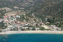 Agios Isidoros (Greek: Άγιος Ισίδωρος) is a village in the municipal unit of Plomari, Lesbos Island, Greece. It is located just two kilometers outside the town of Plomari, South Lesbos. It has a pebbled beach which is one of the longest in Lesbos and voted as the 7th best beach in Greece due to the safety provided, the clean water and care for the environment.