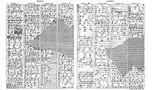 Of uncertain provenance, it is on two tablets, one of which covers 8 columns and more than 350 lines, and including much esoteric detail concerning the temple and its rituals. One was found in the library of Ashurbanipal, purporting to be a copy of an inscription made in antiquity[6] while the other was found elsewhere in Kouyunjik, ancient Nineveh. The Library of Ashurbanipal copy contains two colophons, and apart from the standard library identification, the earlier one reads mudû mudâ likallim, which has been translated as “Let the learned instruct the learned” or alternatively “The initiate may show the initiate.” For those disputing its authenticity, it is a later pseudonymous propaganda piece for the cult of Marduk, emphasizing certain tax exemptions granted for the restoration of the statues.[7] Kassite era royal inscriptions are usually inscribed in Sumerian. Those supportive of its authenticity cite the iconography of the demons described on the door of the cella, which represent Marduk's defeated foes,[nb 5] the gods of cities conquered by Babylon, such as Ešnunna and are illustrative of a middle Babylonian theology. Marduk has yet to attain sovereignty over the universe characterized by the Enûma Eliš and the struggle with Tiāmat.[8]