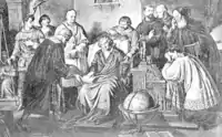 Aleksander Lesser was born in Warsaw in 1814 to Levy Lesser (1791–1870), a famous trader and banker, and Roza Loewenstein (1790–1840).[1][3] Lesser's formal study of painting began in the Warsaw Lyceum under Aleksander Kokular before continuing at the Faculty of Fine Arts at the Royal University of Warsaw in 1830–1831 under Antoni Brodowski, the Polish romantic painter.[1] This university was closed by the imperial Russian authorities after the Polish uprising of 1831; thus, between 1832 and 1835, Lesser continued his studies at the Academy of Fine Arts in Dresden, where he studied with Moritz Retzsch and Karl Christian Vogel.[1] Between 1836 and 1846, Lesser studied in Munich under Peter Cornelius, Heinrich Hess, and Julius Schnorr von Carolsfeld; these individuals were prominent representatives of German romanticism who called themselves Nazarenes.[1] In 1843, Lesser became friends with a prominent Polish poet named Cyprian Kamil Norwid (Norwid later emigrated).[3]