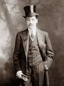 Alfred Vanderbilt attended the St. Paul's School in Concord, New Hampshire, and Yale University (Class of 1899),[2] where he was a member of Skull and Bones.[3] Soon after graduation, Vanderbilt, with a party of friends, started on a tour of the world which was to have lasted two years. When the group reached Japan on September 12, 1899, he received news of his father's sudden death and hastened home as speedily as possible to find himself, by his father's will, the head of his branch of the family.[2][3]