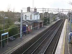 Prior to the electrification of the line, the ticket clerk operated the level crossing gates, the home and distant signals on both the "up" (London-bound) and "down" (country-bound) lines, and his own level crossing gate lock and the one for the level crossing a short distance down the line, at all times that the signal box was unmanned. Edward Burbage fulfilled this duty for nearly 50 years. The crossing gates were replaced with automatic barriers as part of an upgrade of the line in 2008 and 2009.[2]