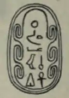 - ↑ See for example seals 22 and 38 pp. 113 and 121 and pl. VI and IX in: Percy Newberry: Scarabs: An introduction to the study of Egyptian seals and signet rings, with forty-four plates and one hundred and sixteen illustrations in the text, 1906, available online copyright-free