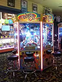 An amusement arcade, also known as a video arcade, amusements, arcade, or penny arcade (an older term), is a venue where people play arcade games, including arcade video games, pinball machines, electro-mechanical games, redemption games, merchandisers (such as claw cranes), or coin-operated billiards or air hockey tables. In some countries, some types of arcades are also legally permitted to provide gambling machines such as slot machines or pachinko machines. Games are usually housed in cabinets.[1][2]