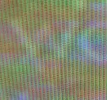 - ↑ Their exact frequencies were chosen such that (for NTSC), they are midway between two harmonics of the frame repetition rate, thus ensuring that the majority of the power of the luminance signal does not overlap with the power of the chrominance signal.