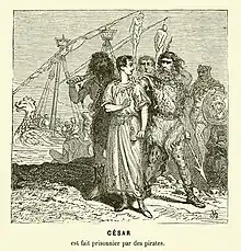 Crete was also notable for its pirates. If a city had a successful slave market it was most likely a pirate port. Notorious pirate havens like Cilicia and Delos had thriving slave markets. According to the ancient geographer Strabo, as many as ten thousand slaves were sold in Delos in one day.[12] Being kidnapped by pirates and sold into slavery was so common that it was a theme of ancient Greek dramatists.