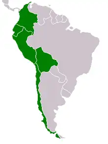 The Andean Parliament is the governing and deliberative body of the Andean Community, conformed by representatives of its four member states Bolivia, Colombia, Ecuador and Peru, and one associate member, Chile. It is composed of 25 parliamentarians, five representing each state.