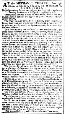 8. "At the Mechanical Theater". London Times. 22 December 1795.