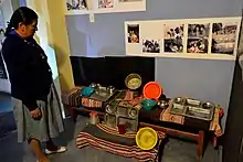 Mendoza standing next to effects belonging to Desaparecidos in the ANFASEP museum.