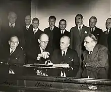 - ↑ Randall Bennett Woods (1990). A Changing of the Guard: Anglo-American Relations, 1941–1946. UNC Press Books. p. 374. ISBN 978-0807818770.