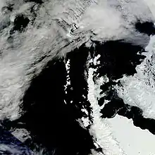 Islands along the peninsula are mostly ice-covered and connected to the land by pack ice.[17] Separating the peninsula from nearby islands are the Antarctic Sound, Erebus and Terror Gulf, George VI Sound, Gerlache Strait and the Lemaire Channel. The Lemaire Channel is a popular destination for tourist cruise ships that visit Antarctica. Further to the west lies the Bellingshausen Sea and in the north is the Scotia Sea. The Antarctic Peninsula and Cape Horn create a funneling effect, which channels the winds into the relatively narrow Drake Passage.