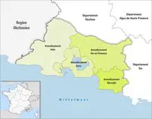 Map of arrondissements of the Bouches-du-Rhône department.
